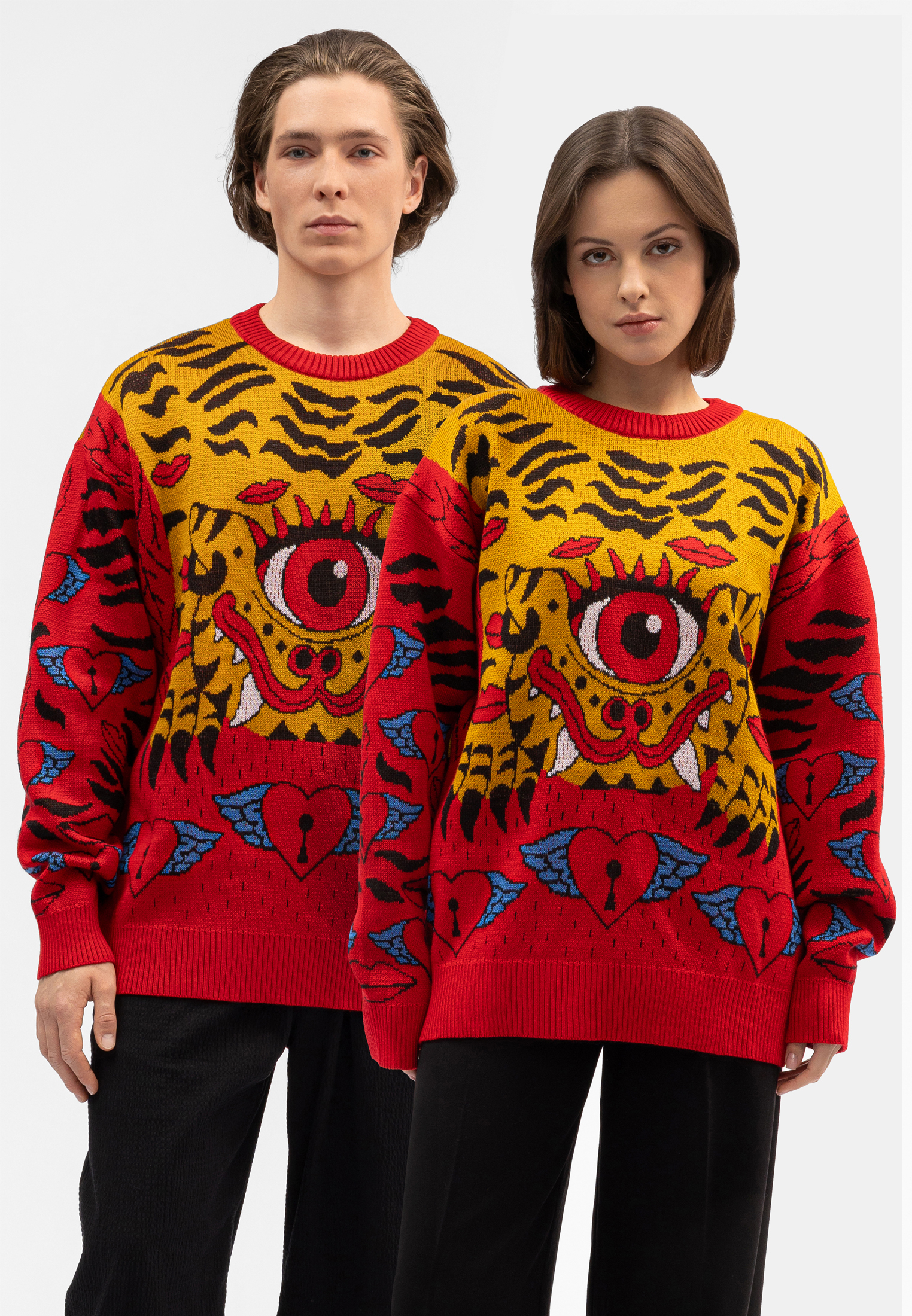 Вязаный жаккардовый свитер, со спущенной линией плеча.Коллаборация с художником Murnau Den Linden(UK).