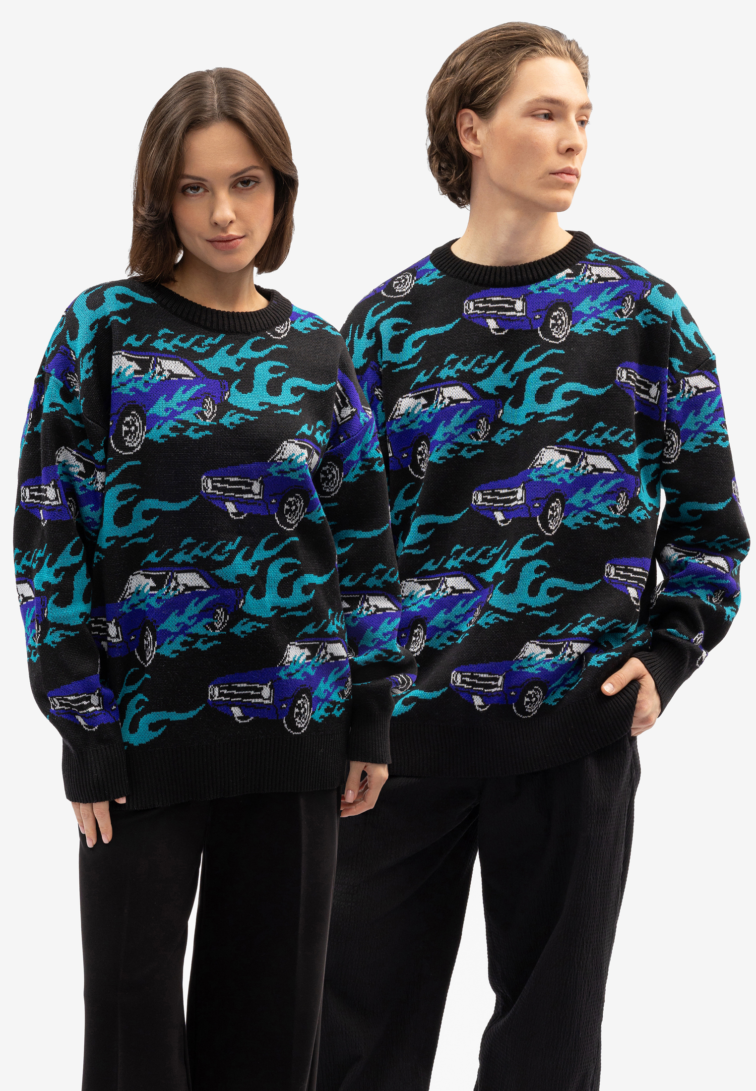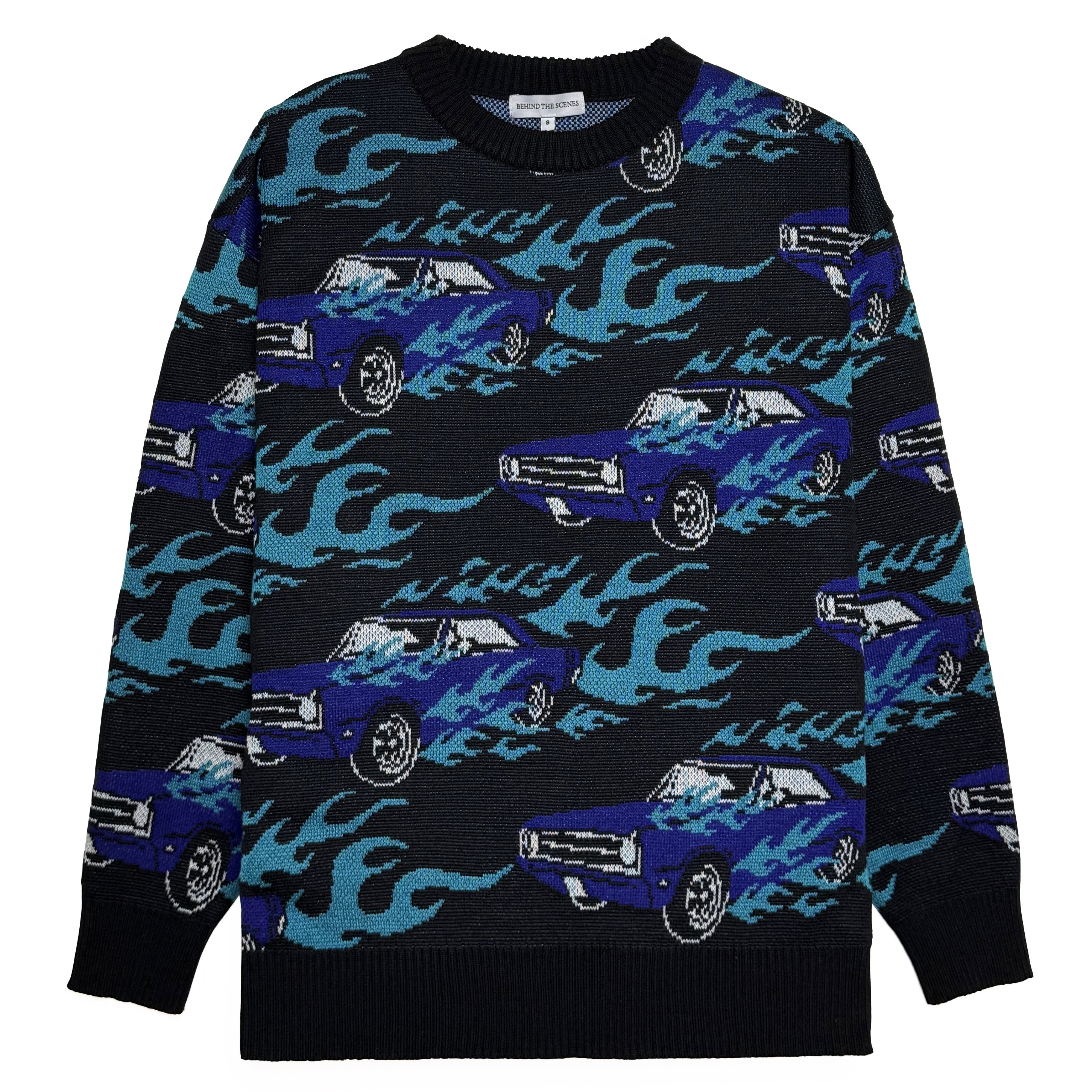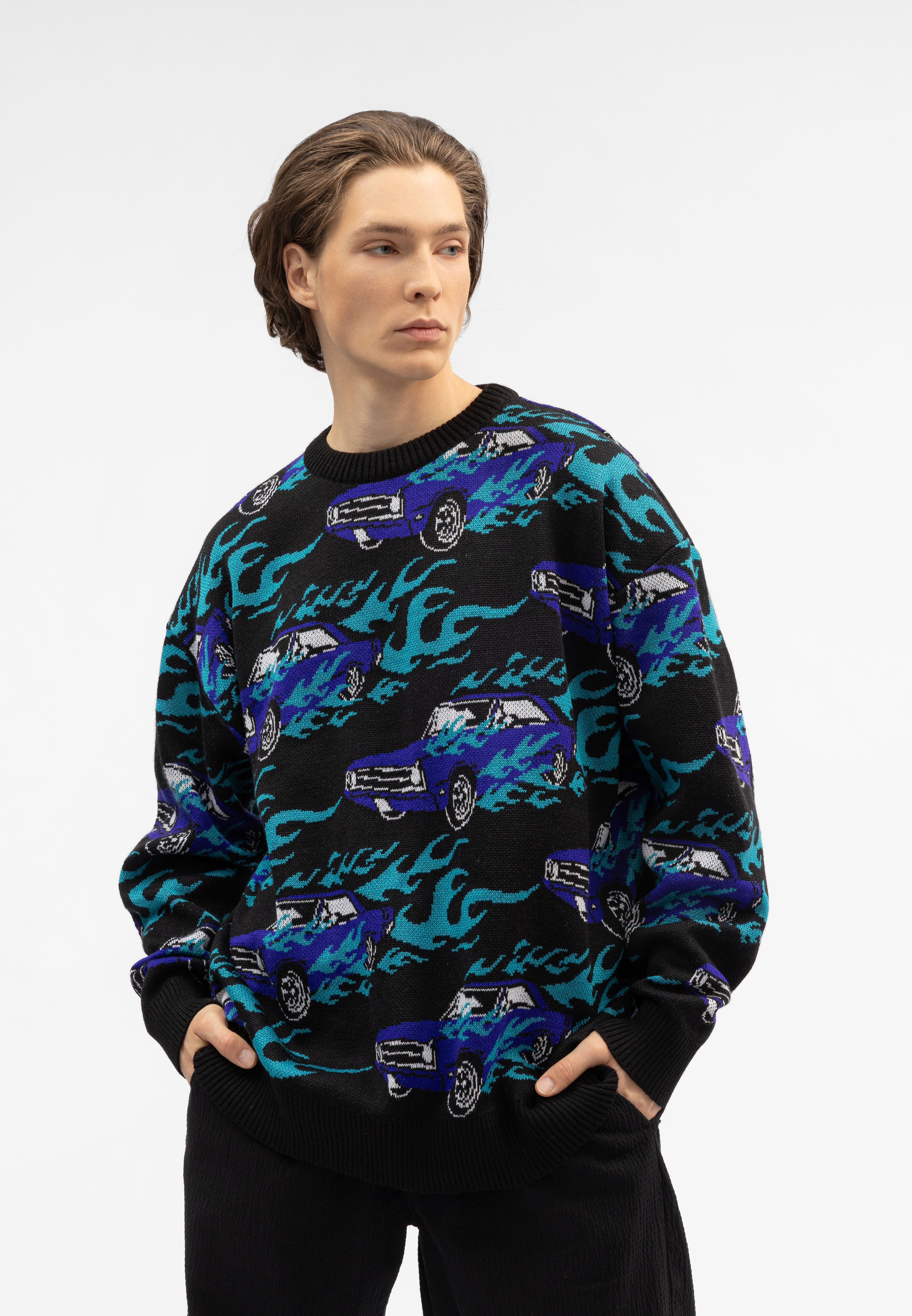 Вязаный жаккардовый свитер, со спущенной линией плеча. Оригинальный дизайн Behind The Scenes studio.
