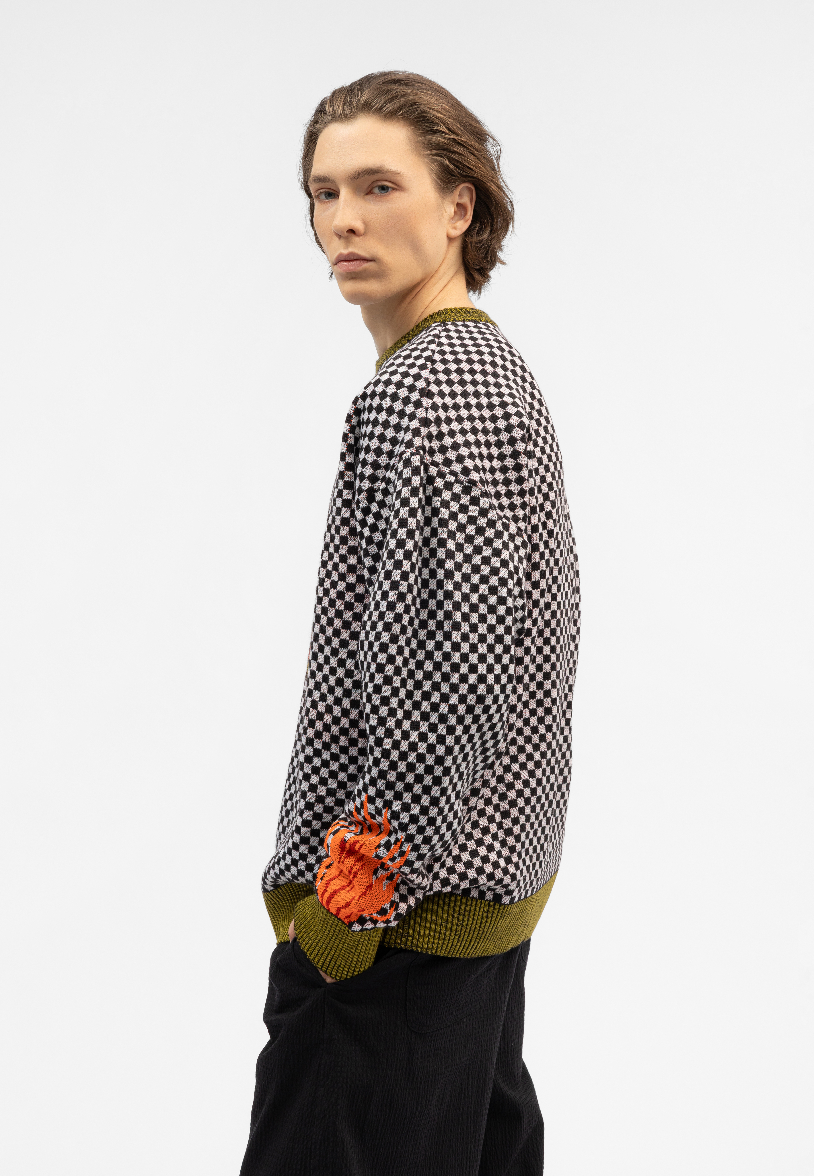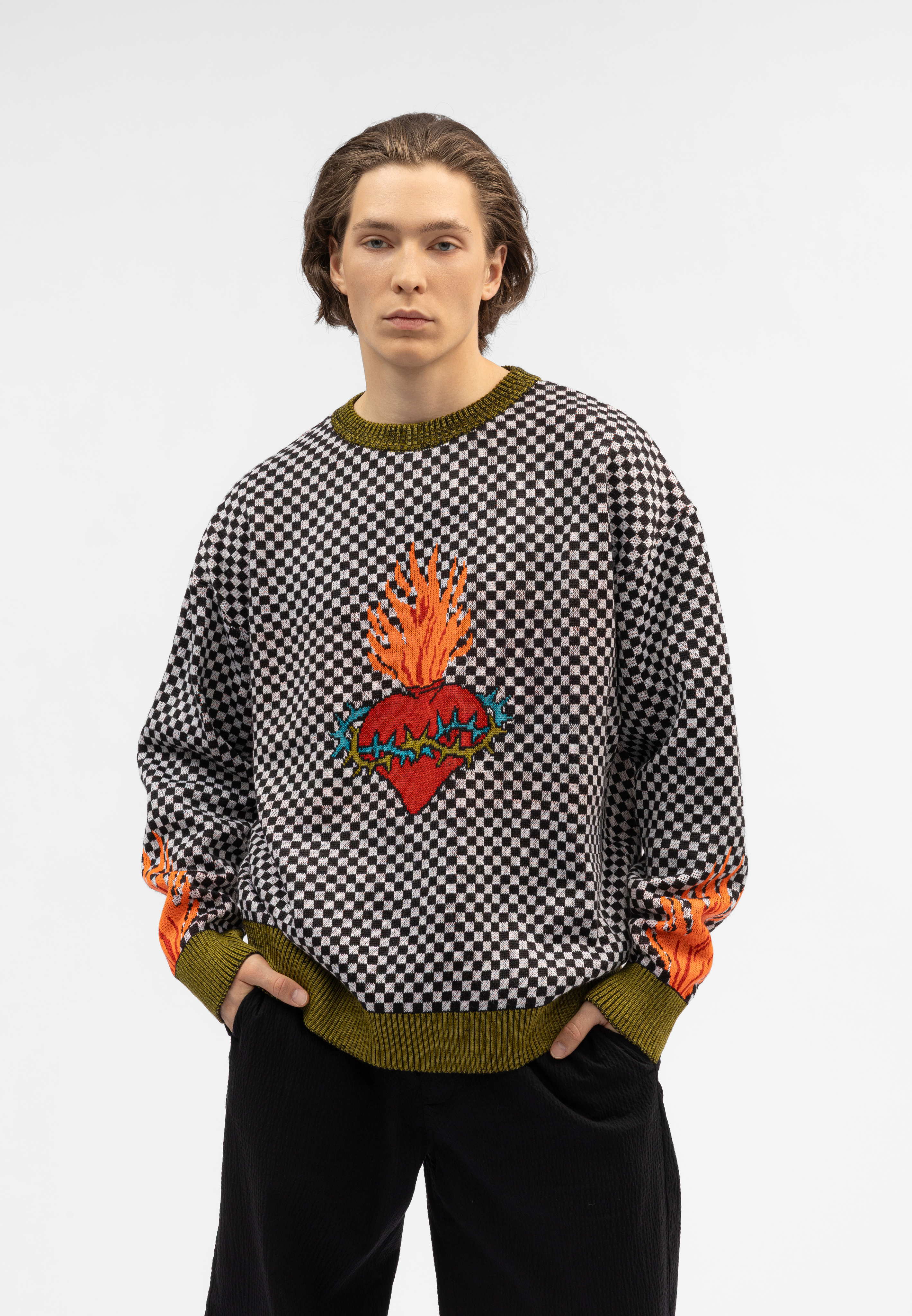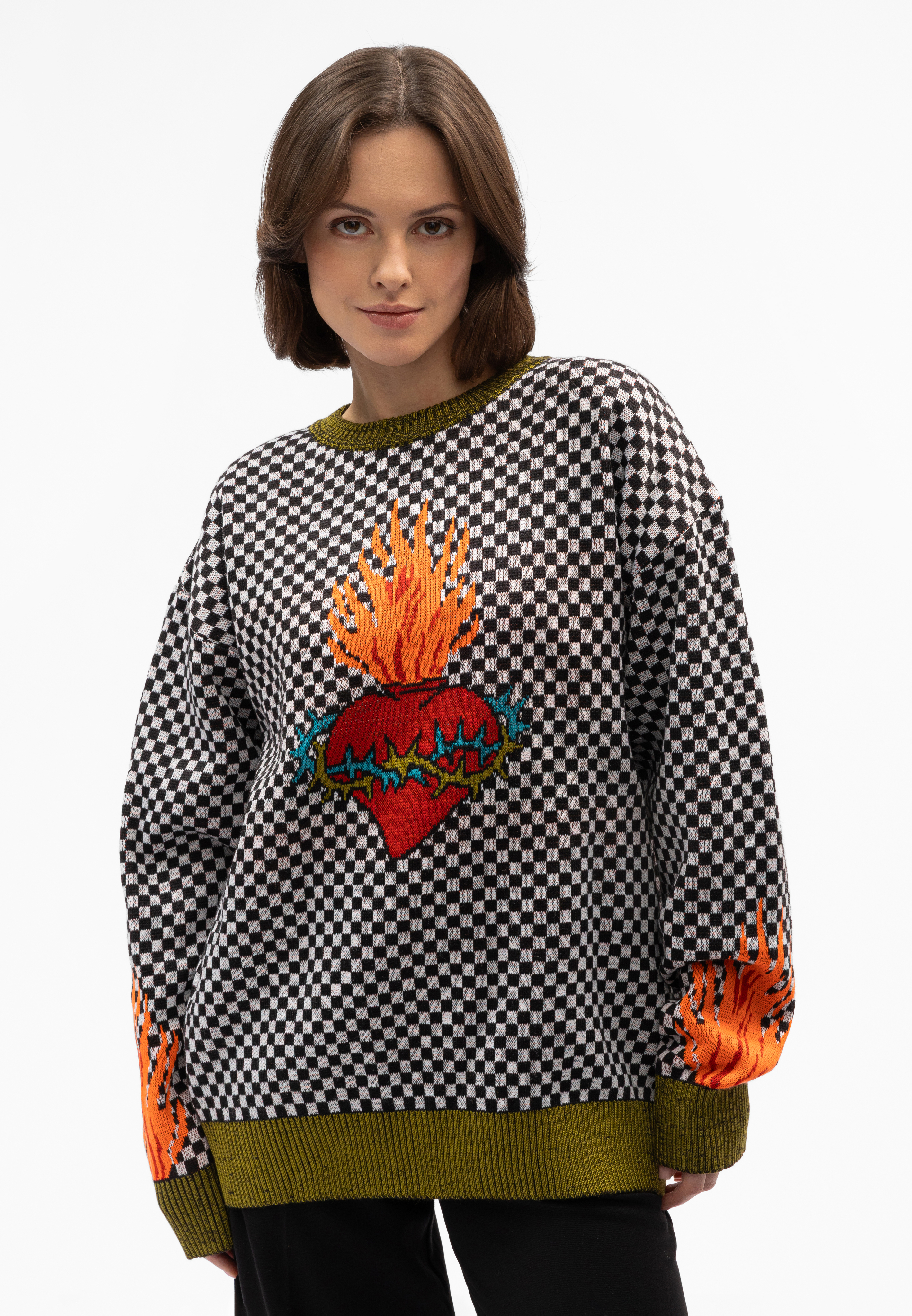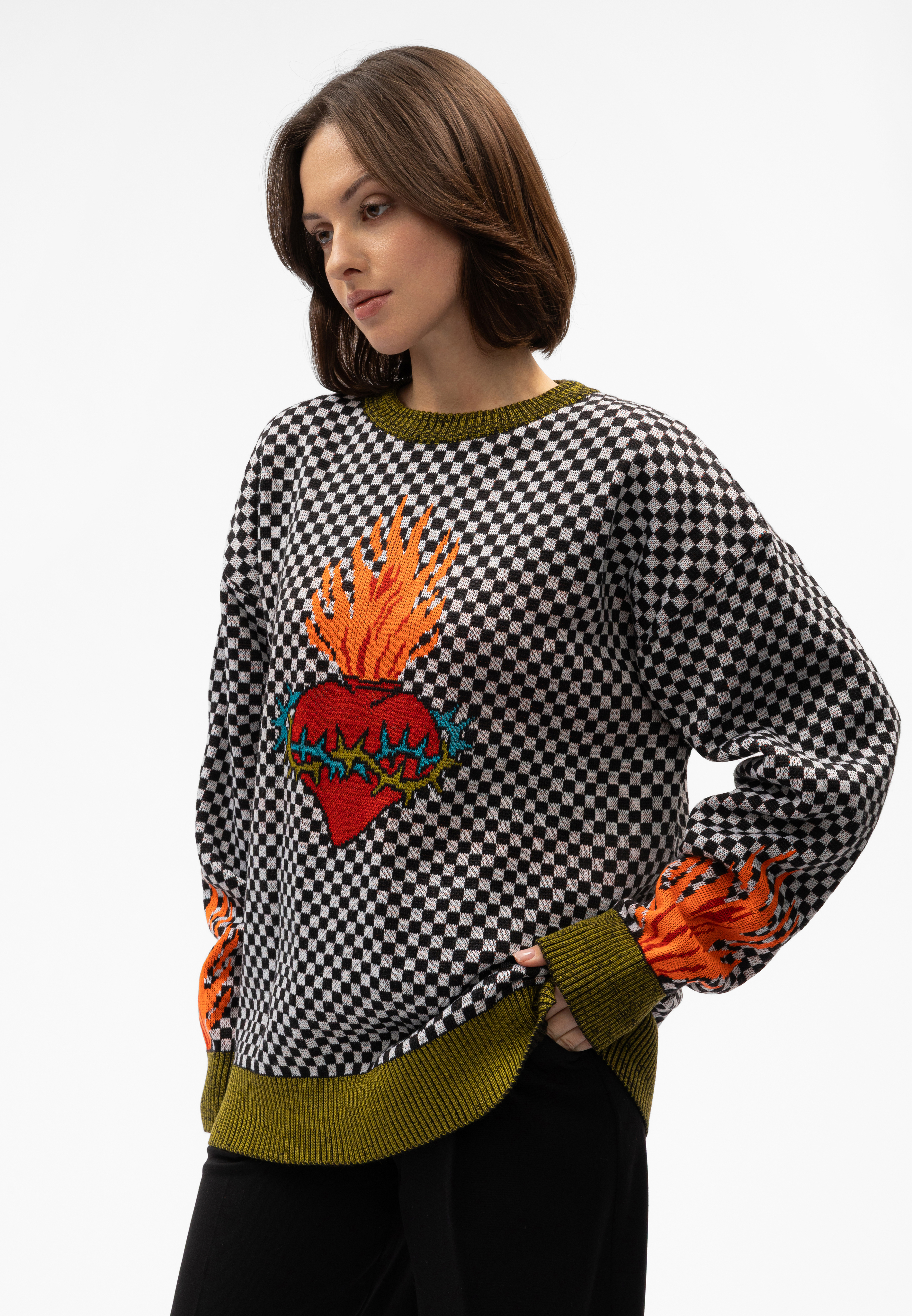 Вязаный жаккардовый свитер, со спущенной линией плеча. Оригинальный дизайн Behind The Scenes studio.
